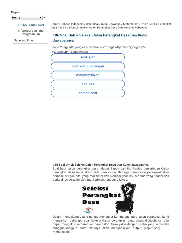 Contoh Contoh Soal Tes Perangkat Desa Dan Kunci Jawaban Revisi Pdf 2021