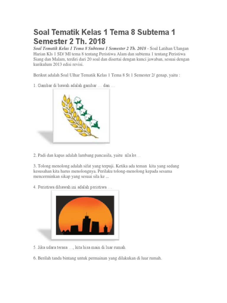 Contoh soal matematika kelas 1 sd semester 1. Tribunpontianak co id berikut kunci jawaban buku tematik kelas 6 sd mi tema 6 subtema 3 pembelajaran 5. Berikut ini ada contoh kunci jawaban buku tematik untuk tema 6 panas dan perpindahannya yang diperuntukkan bagi kelas 5 sd.