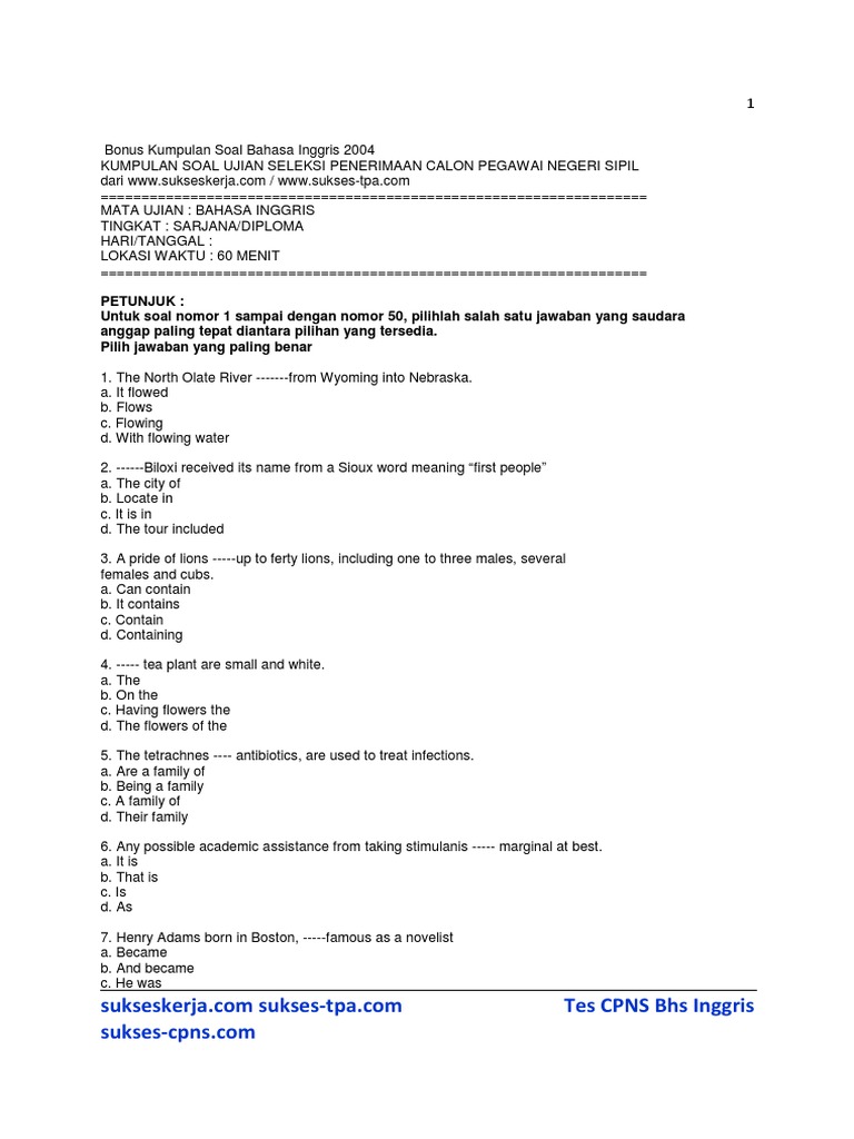 Contoh soal tes cpns bahasa inggris. Siapkah diri Anda mengikuti ujian CPNS 2009. Download pdf google drive 2.