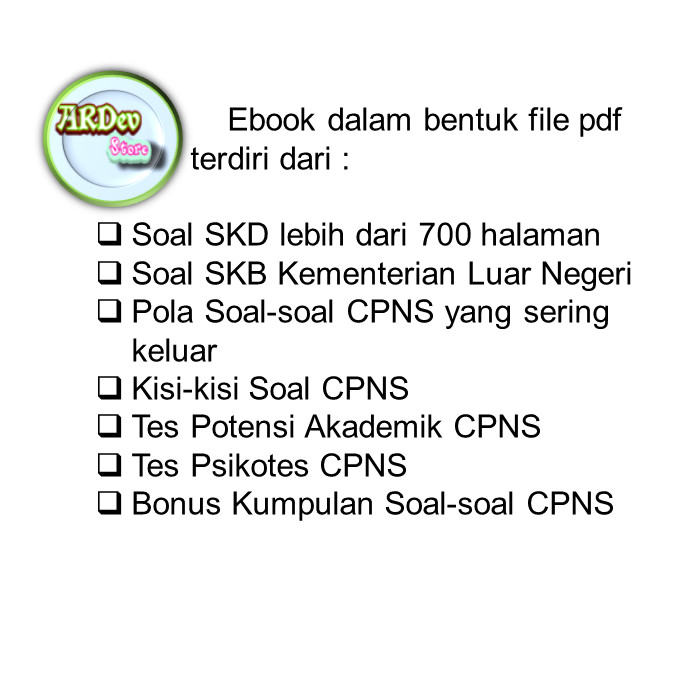 Ebook soal cpns 2017. Selama menjadi calon PNS anda dituntut untuk belajar materi-materi yang akan diteskan sebelum hari-H tes masuk Pegawai Negeri Sipil. Bank soal cpns berisikan kumpulan ebook pdf soal tes cpns beserta pembahasan kunci jawaban soal cpns yang terdiri dari Soal Tes Kompetensi Dasar TKDTWKTKPTIU TKB Psikotes dan Simulasi Try Out CAT BKN CPNS 2017 - 2018 No 1 di Indonesia. Free download latihan soal SKD free download latihan soal CPNS latihan soal toefl TIU latihan soal tes CPNS latihan soal CPNS gratis soal latihan CPNS materi tes CPNS free download.