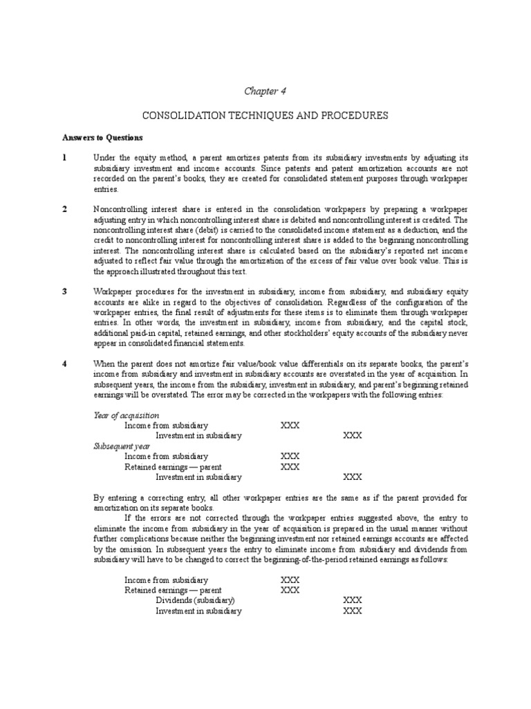 Chapter 2 2 3 solution e2 2 aicpa adapted 1 d 2 b 3 d 4 b pop s investment is reported at its 600 000 cost because the equity method is not appropriate and because pop s share of son s. 13 the stockholders equity of a parent under the equity method is the same as the consolidated stockholders documents similar to kunci jawaban advance accounting chapter 3. 9780134472140 Solutions Manual for Advanced Accounting 13th Edition by Beams.