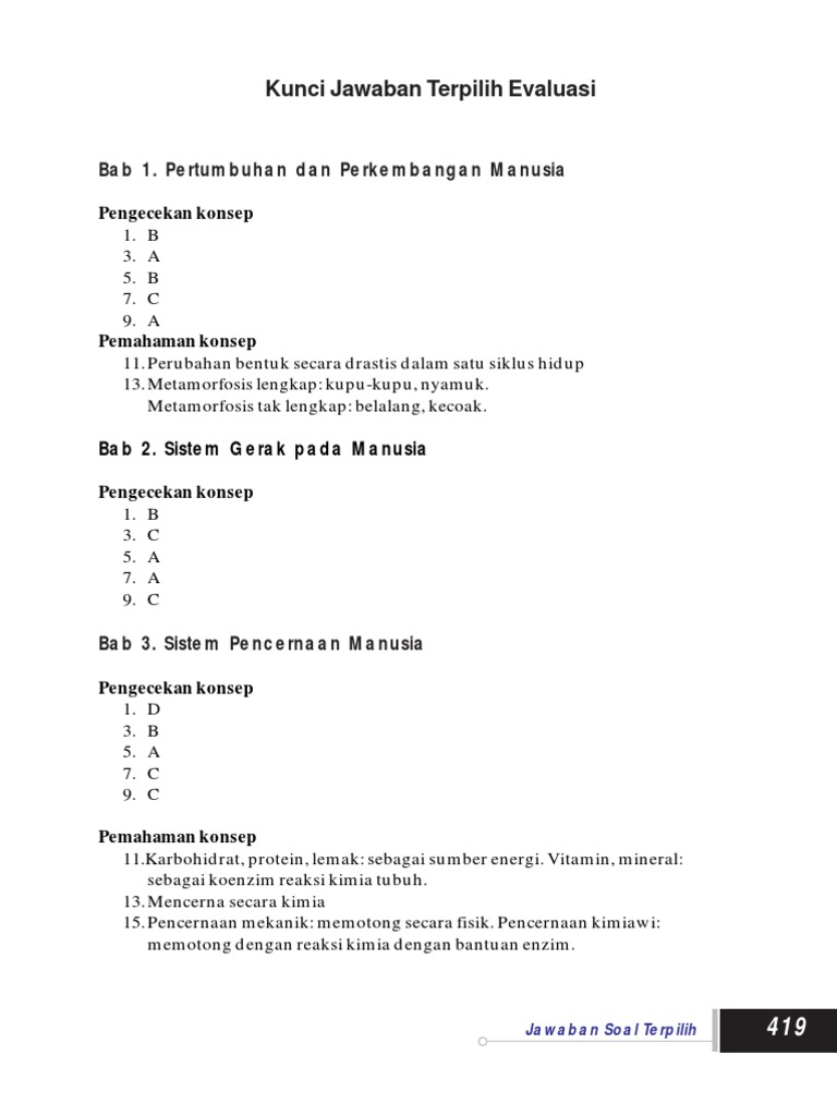 Kunci Jawaban Biologi Sma Ma Kelas X Jilid 1