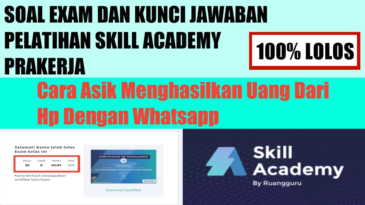 Kunci Jawaban Exam Cara Asik Menghasilkan Uang Dari Hp Dengan Whatsapp Terbaru Skill Academy Youtube