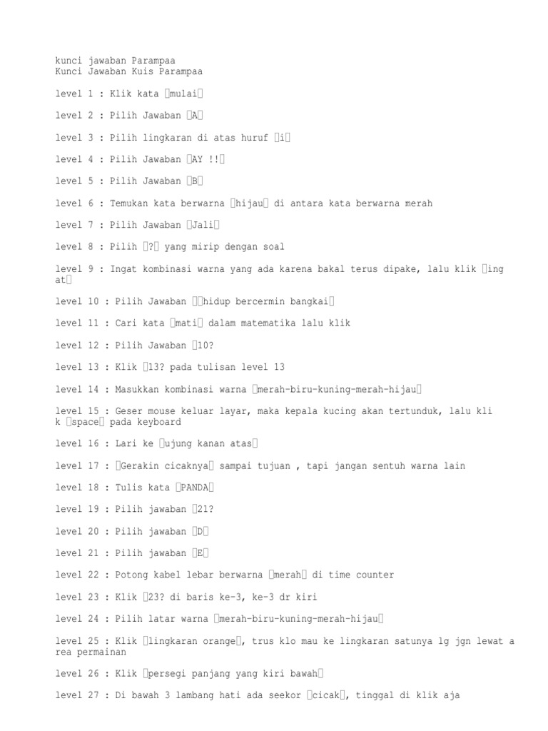 Jawaban quiz parampaa level 15 geser mouse keluar layar nanti kepala kucing akan tertunduk lalu klik tombol space pada keyboard diposkan oleh parampaa land. Klik this level level 104. Keylephant kunci jawaban quiz parampaa level 1 100 1.