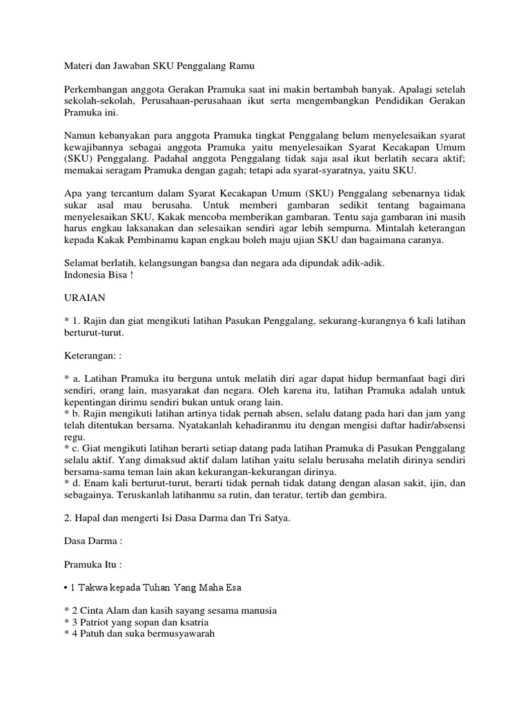 Kunci jawaban sku penggalang ramu 1 sampai 30 berita hari ini october 01 2019 follow bagikan di facebook bagikan di twitter. Sku penggalang click untuk download ms word pdf penggalang ramu 1. Materi dan jawaban sku penggalang ramu.