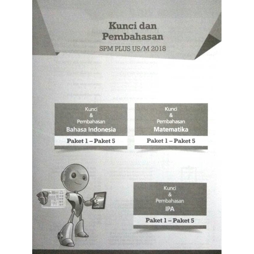 Pin Di Nini. Kunci jawaban spm plus us m untuk sd mi 2018. FOLDER SEKOLAHKU-Prediksi Paket Soal dan Kunci Jawaban USBN atau USM Bahasa Indonesia Matematika dan Ilmu Pengetahuan Alam dalam Paket Soal ini disusun berdasarkan Kisi-Kisi USBN SDMI Tahun 2018 kami sertakan dengan lengkap dengan Kunci Jawaban sesuai Seri Pendalam Materi SPM Plus USBN 2018.
