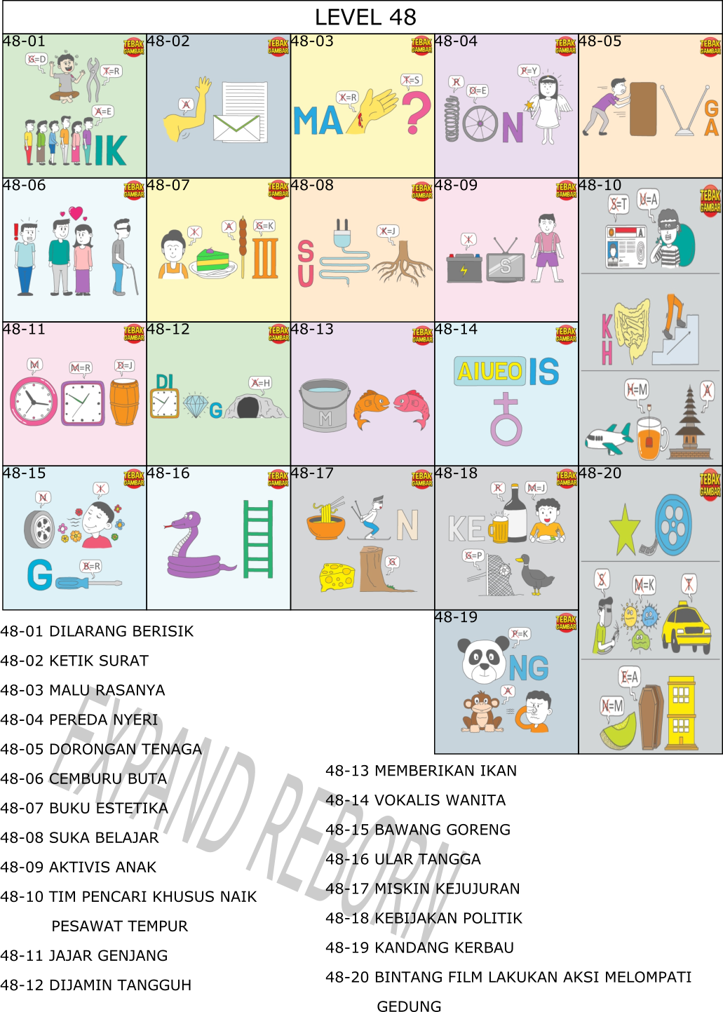 Level 48 Nomor 1. Ini adalah Kunci Jawaban Tebak Gambar Level 46 Nomor 1 20 beserta gambarnya. Cukup pilih tingkat Anda dan kami akan menunjukkan jawabannya.
