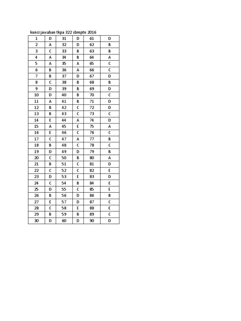 Kunci Jawaban Tkpa 322 Sbmptn 2016