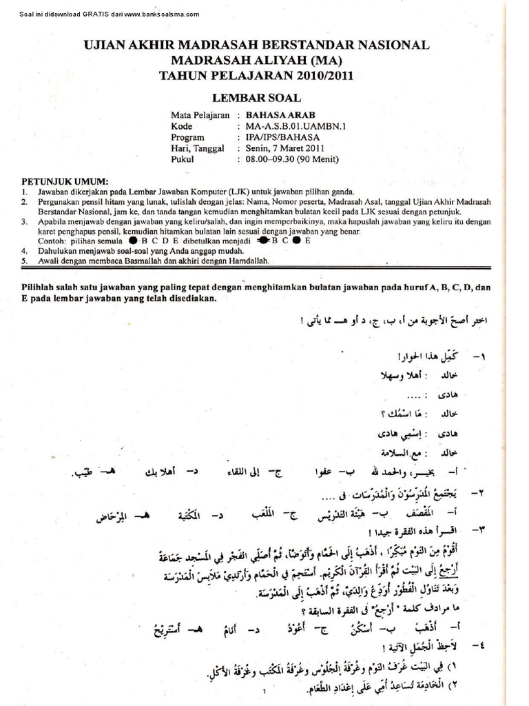 Soal uambn bahasa arab ma 2016 guru ilmu sosial. Dengan semakin dekatnya pelaksanaan ujian tentunya kita sebagai guru sudah harus mempersiapkan siswa kita dengan latihan latihan. Komentar ini telah dihapus oleh administrator blog.