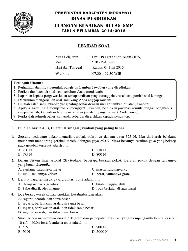 Soal Ukk Ipa Kelas 8 Smp
