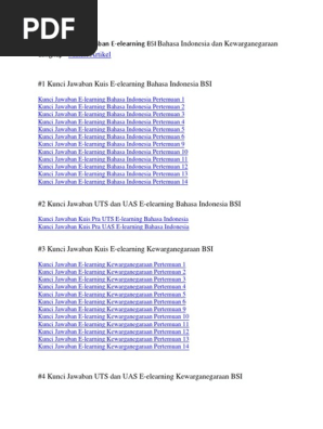 Alk semester 5 bsi beserta soal uts sesuai dengan soal yang suda. Soal ini update 2018 loh dengan jumlah soal 50. Soal dan kunci jawaban uts elearning pengantar teknologi informasi dan komunikasi bina sarana informatika ditulis oleh blogger newbi.