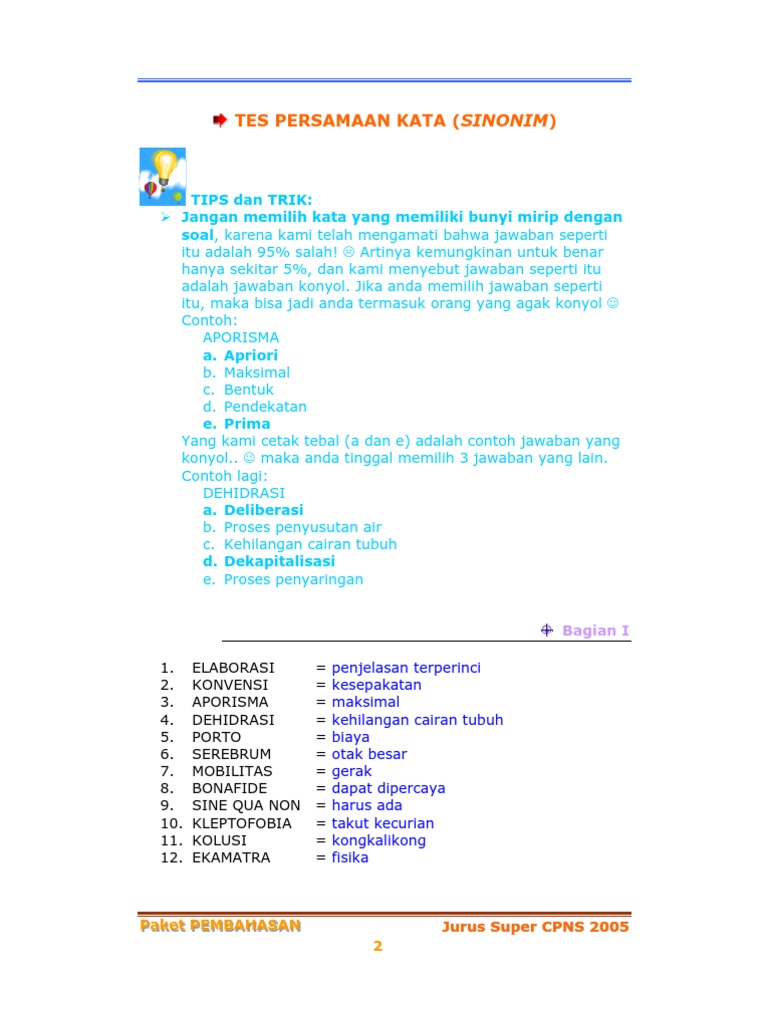 Disediakan simulasi CAT Online tetapi soal latihan sedikit dan tidak ada pembahasan soal. Pembahasan Soal CPNS Paket PEMBAHASAN Paket PEMBAHASAN Jurus Super CPNS 2005 54 WWWCPNS2005TK 4. Jangan malas latihan Soal Tes CPNS tahun 2021Tentang peserta harus menjawab benar dan cepat kuncinya ada di latihan.