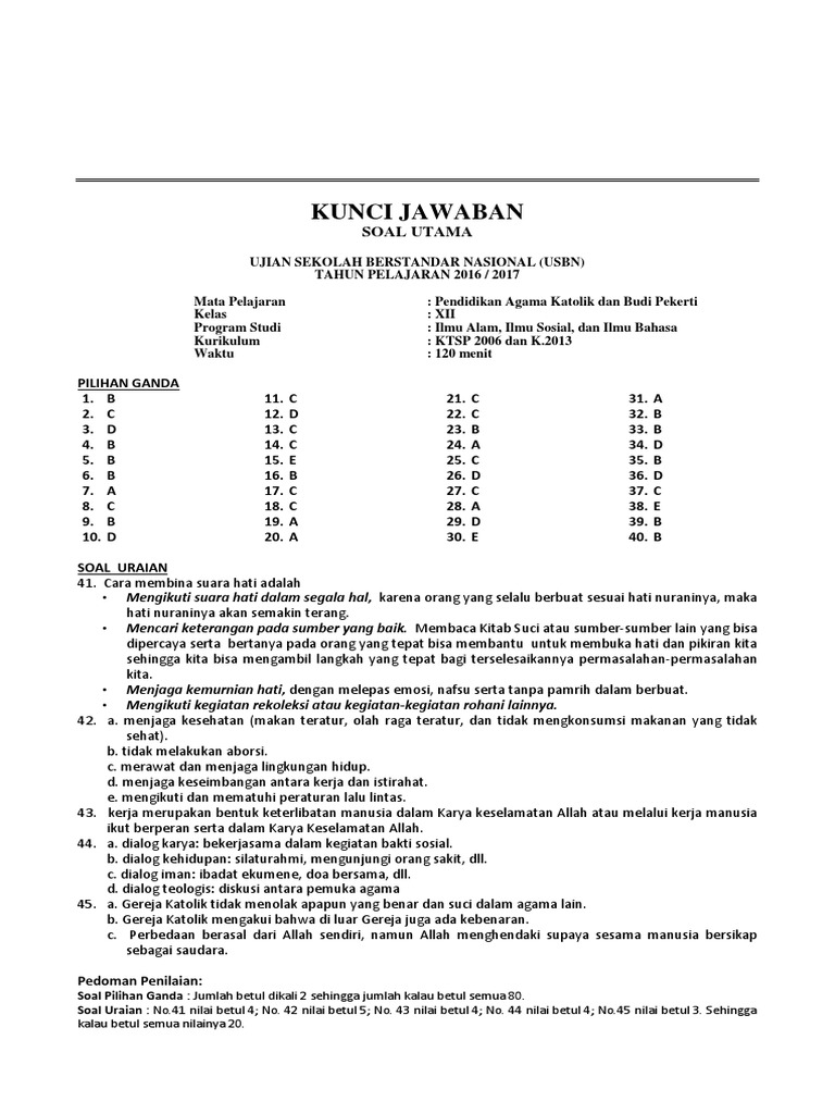 Soal Uas Pas Agama Katolik Kelas 12 Sma Smk Semester 1 Kurikulum 2013 Dan Kunci Jawaban Youtube