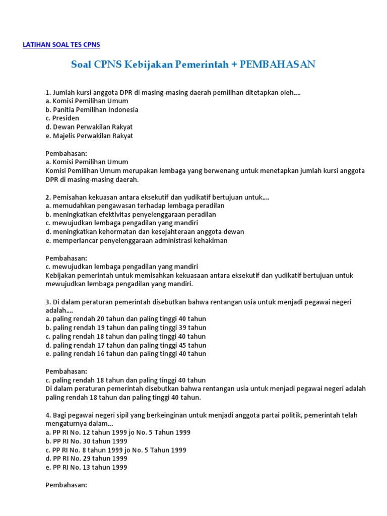 Soal Cpns Bahasa Indonesia Dan Pembahasannya