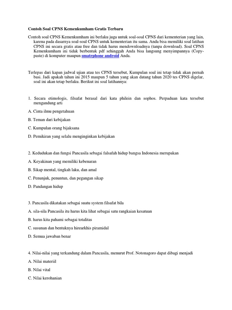 Contoh Soal Cpns Kemenkumham Gratis Ilmusosial Id