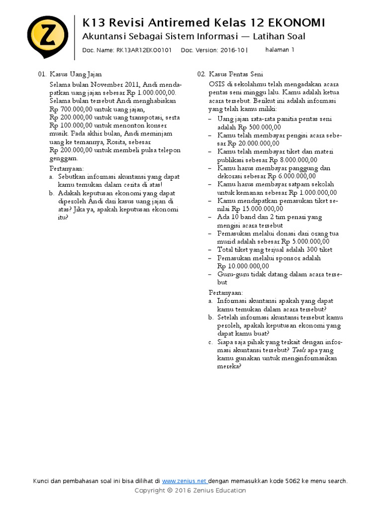 Contoh file soal uts lengkap kelas 1 6 sd mi semua mata pelajaran 2016 2017 berikut ini adalah kumpulan dari berbagi sumber tentang contoh soal akuntansi sebagai sistem informasi yang bisa gunakan untuk bank soal download sd dan diunduh secara gratis dengan menekan tombol download biru dibawah ini. Soal Dan Jawaban Akuntansi Sebagai Sistem Informasi Model data rea adalah sebuah framework akuntansi untuk memodelkan resources events dan agents yang penting dalam suatu organisasi dan membuat garis hubungan keterkaitan diantara ketiganya. Laporkan kepada pengawas ujian apabila terdapat lembar soal yang kurang jelas rusak atau tidak lengkap.