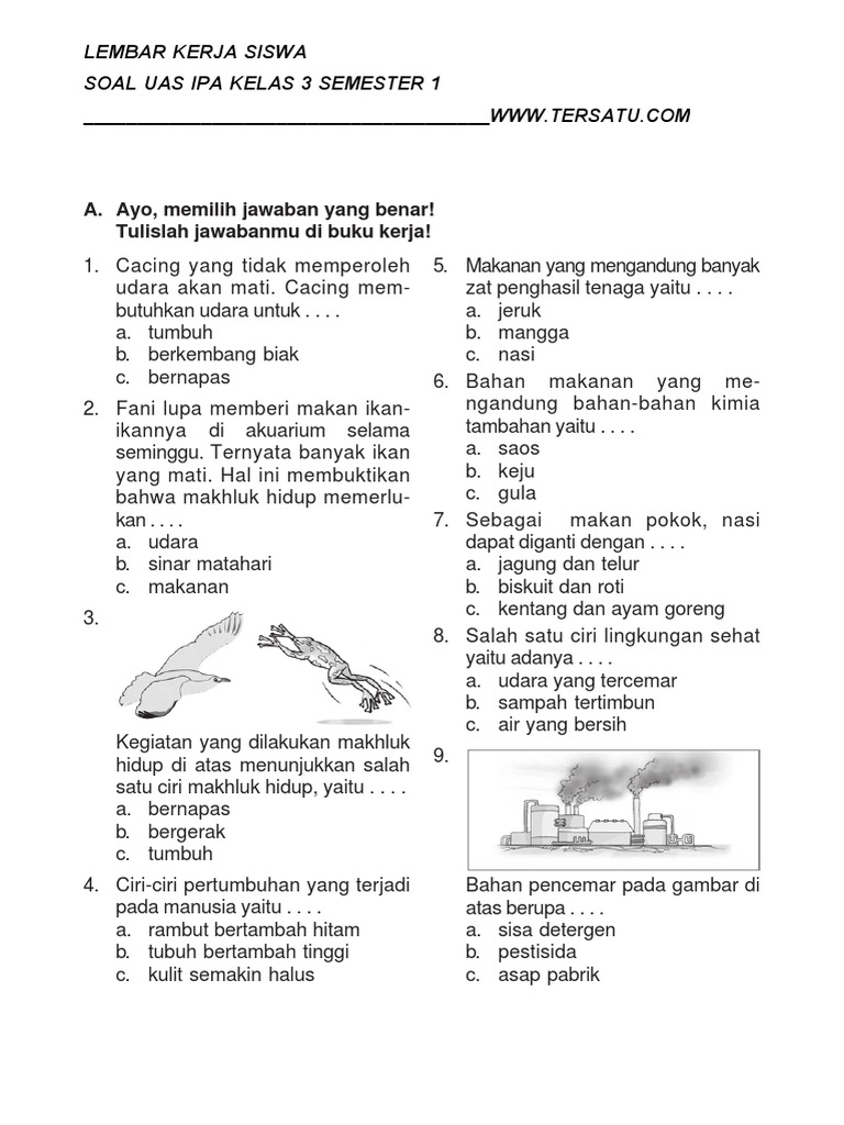 Soal ipa kelas 3 sd pdf 2021. Soal Bahasa Indonesia Kelas 3. Soal fisika kelas x sma semester 2 httpsrukim id. Soal Ilmu pengetahuan alam Kelas 1 Hal ini merupakan salah satu mata pelajaran yang mempelajari tentang keindahan alam dengan aspfek tentang budaya yang ada di lingkungan sekitar dalam kehidupan sehari-hari maka disini kami memberikan contoh Soal IPA Kelas 1 atau tingkat SDMI PG dan Essay sebagai mata pelajaran yang terdapat di setiap sekolah negri swasta kelas 123456 SD dan MI.