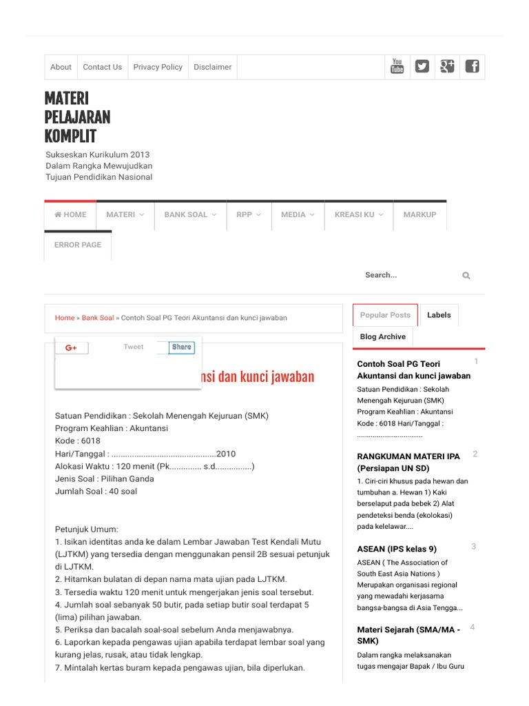 Soal Teori Kejuruan Akuntansi 2014 Dan Kunci Jawaban