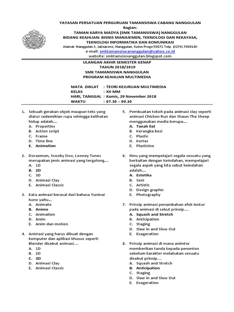 Soal Teori Kejuruan Multimedia Dan Kunci Jawaban 2019