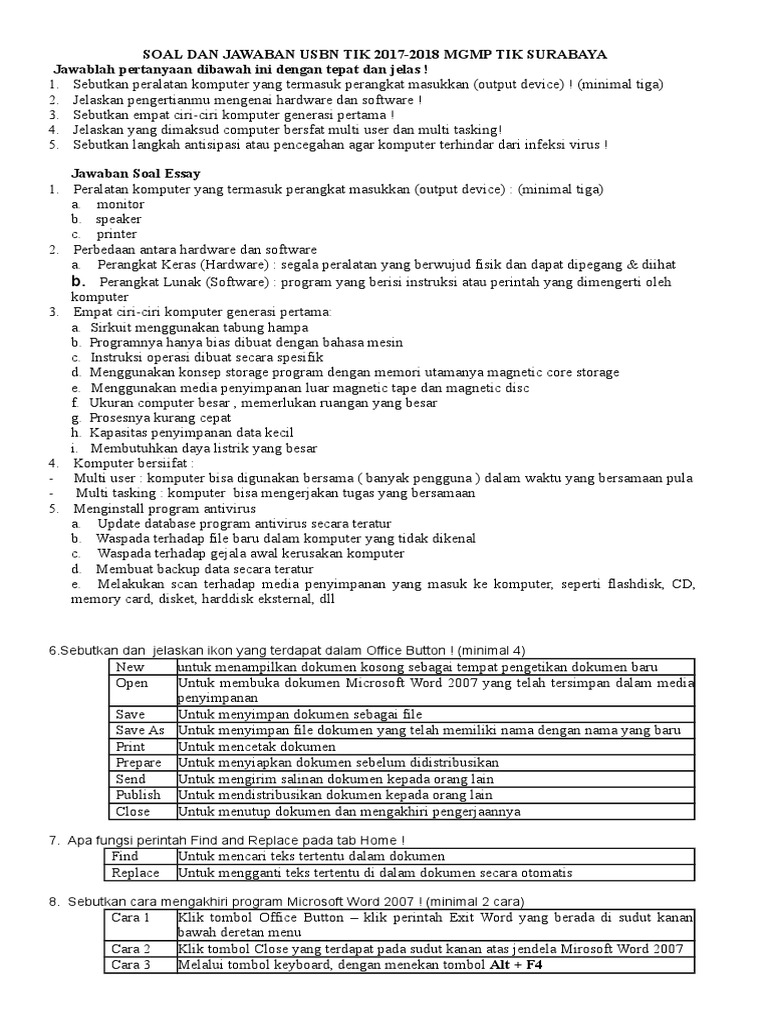 Soal Tik Kelas 9 Semester 1 Dan Kunci Jawaban 2019