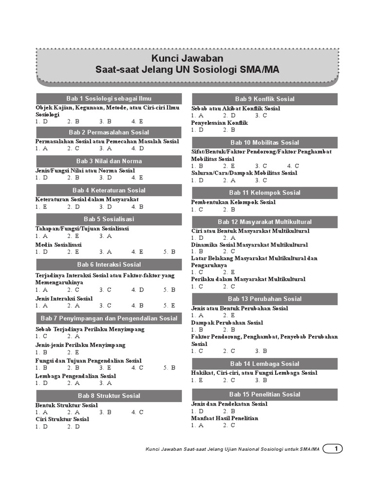 Semua soal-soal yang ada merupakan contoh soal dengan pembahasan sesuai dengan SKL Sosiologi yang diambil dari tahun-tahun sebelumnya.