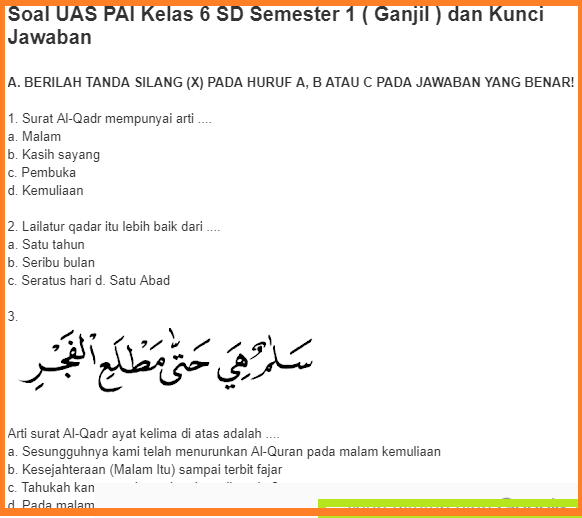Soal Uas Pai Kelas 6 Semester 1 Dan Kunci Jawaban Revisi 2021