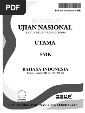 Soal un bahasa indonesia smk 2016 dan kunci jawaban pdf. Soal ini bisa sobat kerjakan melalui media apa saja yang memungkinkan online pun juga bisa mengingat admin sudah memberikan keseluruhannya di artikel ini. Soal un bahasa indonesia smk 2016 dan kunci jawaban pdf. Kalimat utama merupakan kalimat yang isinya bersifat umum dan didukung kalimat penjelas.