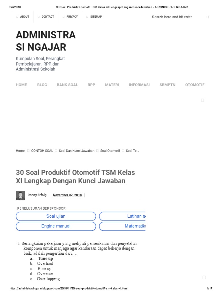 Soal teori kejuruan otomotif pdf. Soal un teori kejuruan otomotif dan kunci jawaban 2018. Soal ulangan akhir semester tkr kelas xii kumpulan jawaban dan soal otomotif.