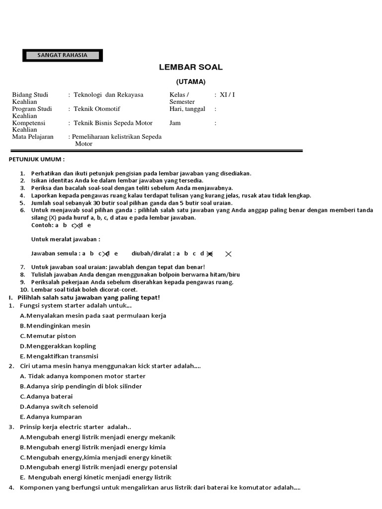 Soal un teori kejuruan otomotif dan kunci jawaban. Soal un teori kejuruan otomotif dan kunci jawaban berikut ini adalah file tentang soal un teori kejuruan otomotif dan kunci jawaban yang bisa bapak ibu unduh secara gratis dengan menekan tombol download pada tautan link di bawah ini. Soal unbk teori kejuruan tkr dan kunci jawaban 2020 hai sobat di kesempatan kali ini kami soal di jenjang pendidikan sekolah menengah kejuruan untuk ujian produktif di jurusan otomotif teknik kendaraan ringan tkr untuk dapat digunakan di tahun pelajaran 2020 2021. Homepage pencarian untuk.